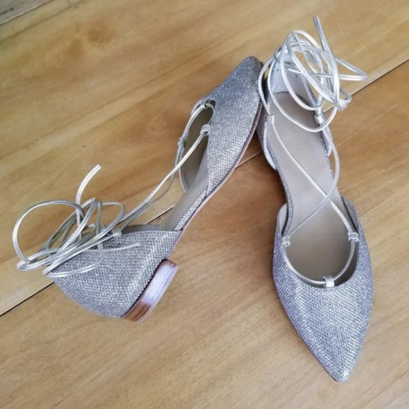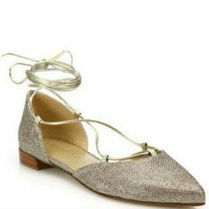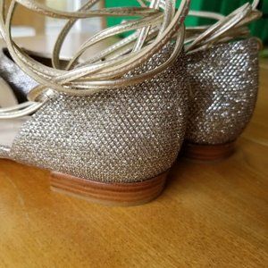 Stuart Weitzman Gilligan glitter lace-up d'orsay flats. Leather sole, made in Spain. Metallic glitter material with soft gold wrap around laces and wooden heel. New without tags, unfortunately I don't have the original dust bag or box. Original price was $398 USD. Absolutely beautiful, pictures don't do these justice. Shoes fit true to size.