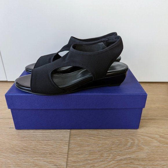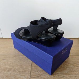 Stuart Weitzman Giver Stretch Demi-Wedge Sandal, Black Gauze, Size 8, BNIB