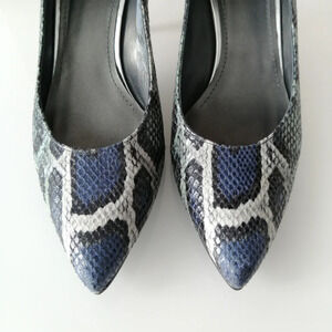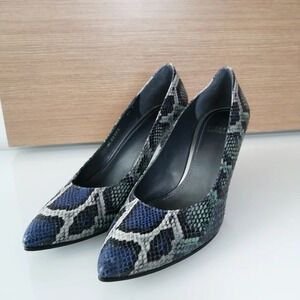 Stuart Weitzman Green Blue Snake Print Leather Pointed Toe 3.5" Heels 9.5