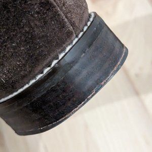 Classic loafer with tassel detail in a gorgeous chocolate brown suede. These are a size 8 but fit slightly longer. The perfect addition to your quiet luxury style! Includes original box and dust bag.