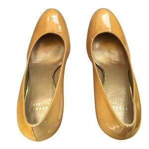 Elegant patent leather beige/nude pumps in a sleek design with a 3.25” heel.