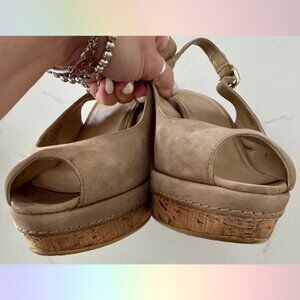 Stuart Weitzman "Jean" Tan Suede Wedge Heels – Size 7