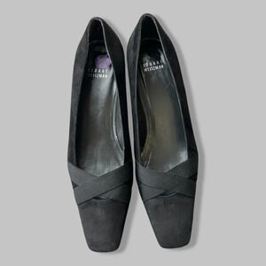 Stuart Weitzman Kitten Heel Suede Leather Square Toe Pumps