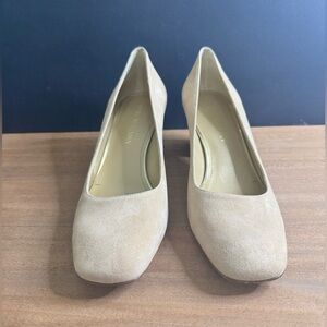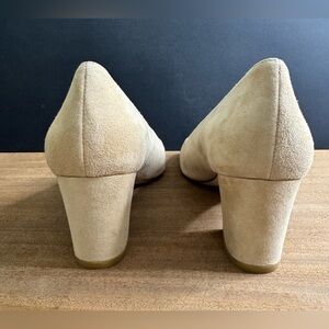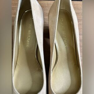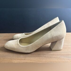 Stuart Weitzman MaryMid Suede Pump Block Heel Summer in Bisque Leather Shoes
