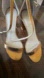 Shimmering gold heels with a sleek design. Perfect for adding glamour to any outfit.worn few times