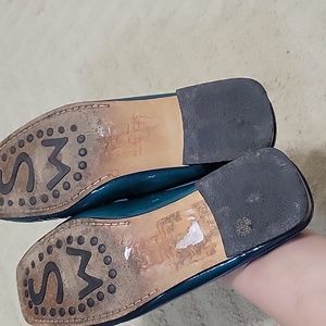 Tesl blue patent leather Sam Edelman mules in VGUC. Size 7.5. Silver buckles and studs add style to these mules. Comfortable and easy wear.