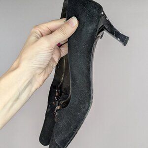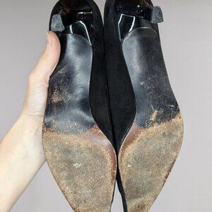 Stuart Weitzman Pointed Toe Flocked Velvet Pumps Black Size 7.5