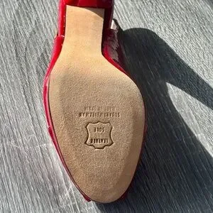 Stuart Weitzman Red Patent Leather Slingback Peep Toe Heels 6.5M NEW
