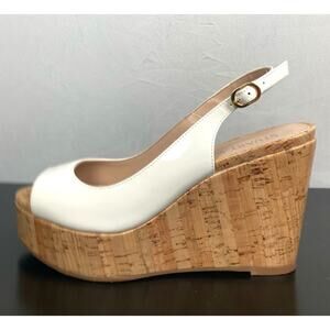 Stuart Weitzman Riveria Patent Leather Wedge Slingback Sandals White 6.5
