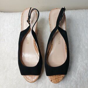 Stuart Weitzman Riveria Platform Wedge Suede Sandals Black Size 8.5
