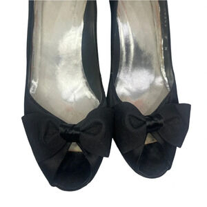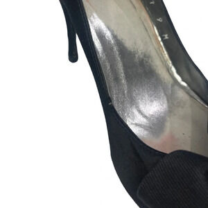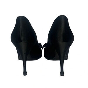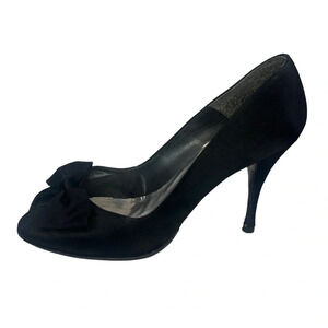 Stuart Weitzman Satin Open Peep Toe High Heels Bow Accents | Black | Siz…