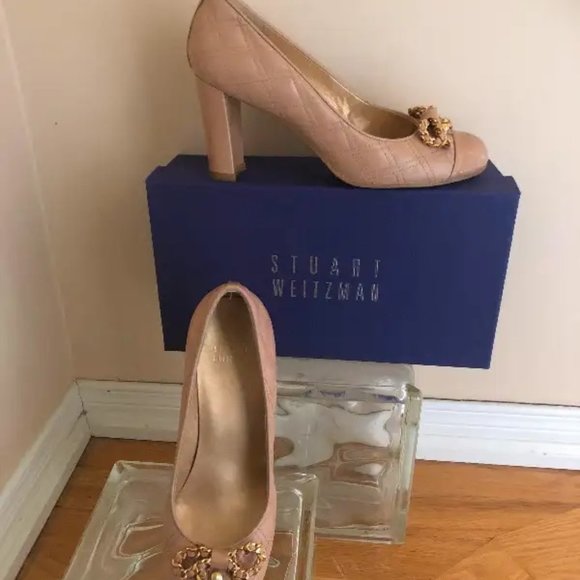 Stuart Weitzman – Nude colour with gold link embellishment – Size 8.5