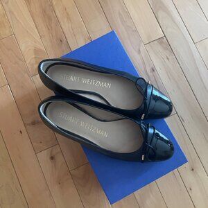 Stuart Weitzman Sleek Bow Flat, Black, Leather, Size 6, NWT