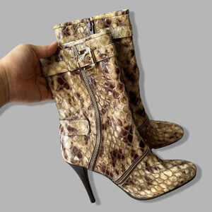 Stuart Weitzman Snakeskin Heeled Booties Made In Spain