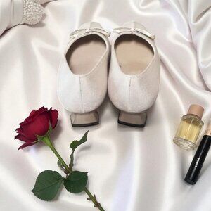 Perfect for women with smaller feet or a junior girl, these heels offer a classic look that isn’t too high for formal occasions. There’s a tiny mark inside the right shoe, but otherwise they’re in excellent condition. Inside marking: 2L 63262.
