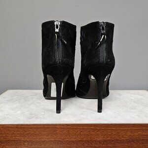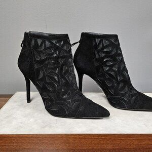 Discover the epitome of elegance with Stuart Weitzman Suede Mesh Boots from Fine Finds Designs. Featuring a matched front cut out and a chic pointed toe and 4-inch heel, these boots are crafted to perfection for the discerning fashionista.
