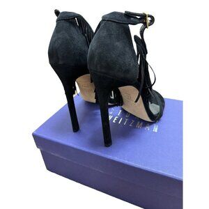 Stuart Weitzman Sz 7 Heels Love Fringe Strappy Sandals Black Suede Classic Party