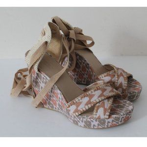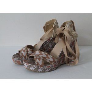 Stuart Weitzman & Theodora Callum Biarritz Printed Wedge Sandals Size 40/ US 9.5