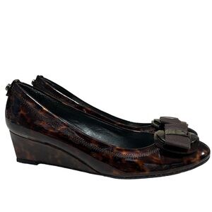 Stuart Weitzman Tortoise Shell Print Wedge Bow Shoes