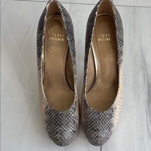 Stuart Weitzman Two Tone Watersnake Platform Pumps 7.5