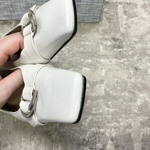 Stuart Weitzman White Leather Slingback Heels with Buckle Detail – Size 7.5