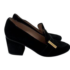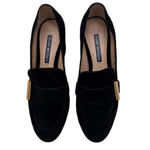 Stuart Weitzman Women The Preston Cylinder Pump Loafer Size 6 M black Suede Heel