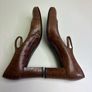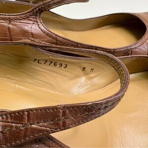 Stuart Weitzman Women’s 9 Brown Alligator Mary Jane Block Heel Faux Button Shoes