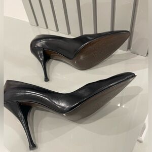 Stuart Weitzman Women’s Black Leather Eva 100 pointed toe pump in 38