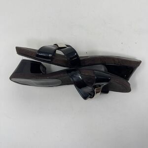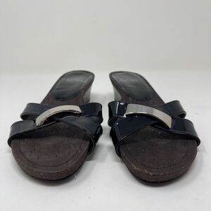 Stuart Weitzman Women's Cork Slip On Sandals Open Toe Black Patent Strap Sz 8.5
