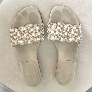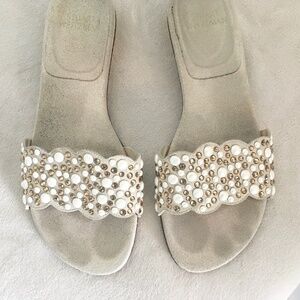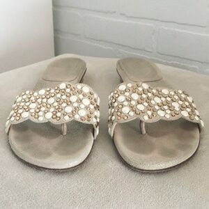 Stuart Weitzman Women’s Sandals Flats Goldie slide Pearly Sequins Sz 7.5