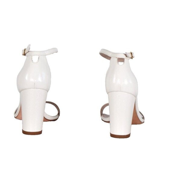 Stuart Weitzman Womens US7 White Nearlynude Patent Leather Sandals w/Ankle Strap