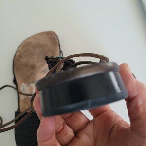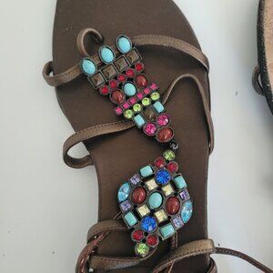 Bejeweled Gladiator Sandals (all jewels are intact), minimal clip toe design with leather rope (approximately 22" each side) adjustable to different calf size and long enough to go around your legs;