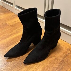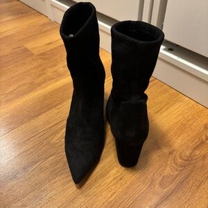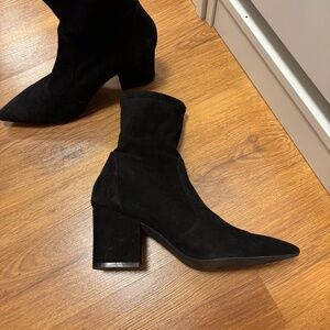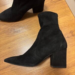 Stuart Weitzman Stuart 75 block heeled bootie. In excellent condition, only worn once for an indoor event. Material is suede.