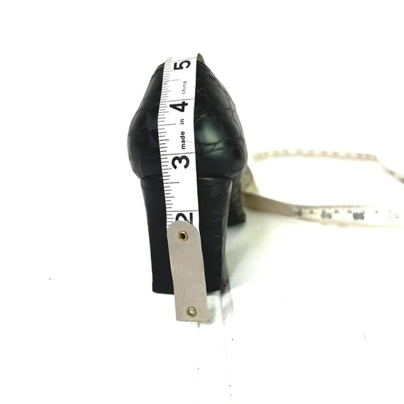 Stuart Weitzman black leather heels block heels square two tassel loafer heels vintage crocodile animal prints women size 8.5