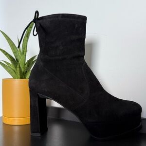 Stuart Weitzman black suede Shorty platform heel calf boots - size 8.5