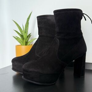 Stuart Weitzman black suede Shorty platform heel calf boots - size 8.5 NWT