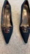 Stuart Weitzman black tortoise patent tie bow kitten heel pumps Sz 8 classy