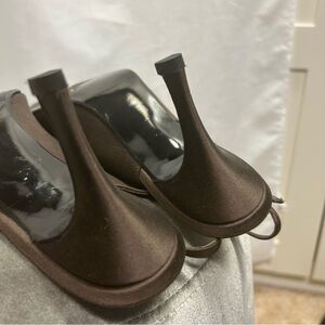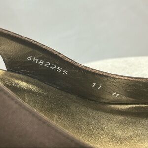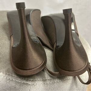 Stuart Weitzman brown satin sling back low heel gem jewelled buckle formal Sz 11