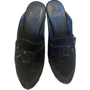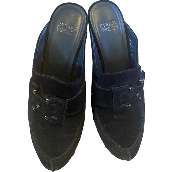 Stuart Weitzman double agent, heeled, suede, studded, mules. sz 5