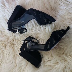 Stuart Weitzman stappy chunky suede leather heel black size 7