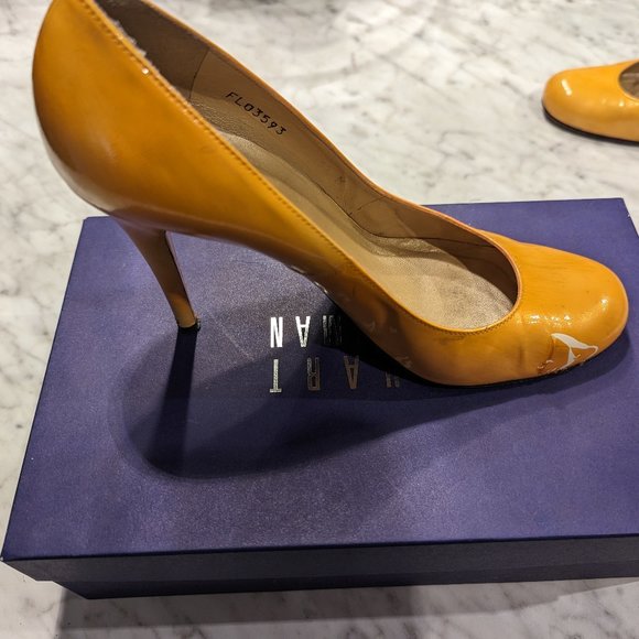 Stuart Weitzman stiletto high heels Size 9 Orange Wood bottom Patent leather