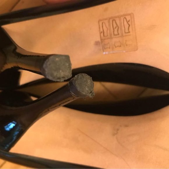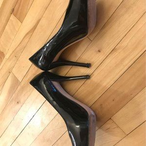 Like new, 6.5 Stuart Weitzman x Russell&Bromley peep-toe heels. If you’re a 7, they’d still fit.