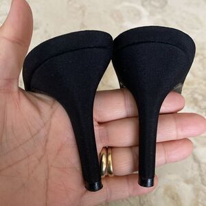 Stuart Weitzman Black Satin Heels Silver Rhinestone Moon & Star Mule Sandals