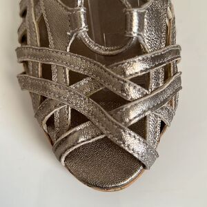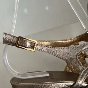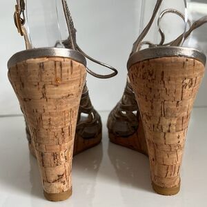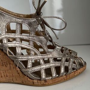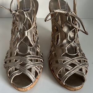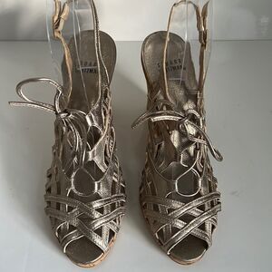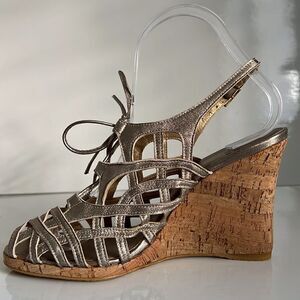 Stuart Weitzman Metallic Leather Wedge Cork Heel Lace Up Sandals Size 38