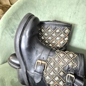 Step out in style with these chic studded black leather ankle boots. Perfect for adding an edgy touch to any outfit.