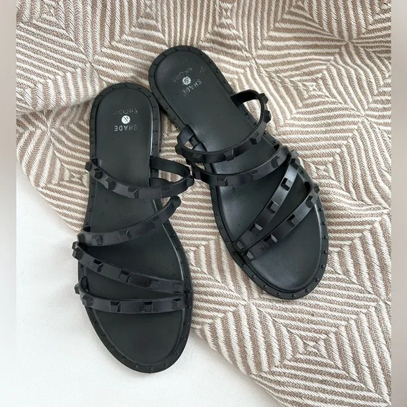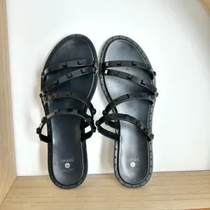 TARGET studded sandals in the style of Valentino. These black slides are a classic summer look that pair well with dresses and denim cutoffs. Size 6. Fits up to 6.5. Lightly worn.