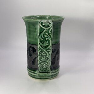 Studio Art Pottery Mug Green & Black Signed Deb Vereschagin Sask. Canada