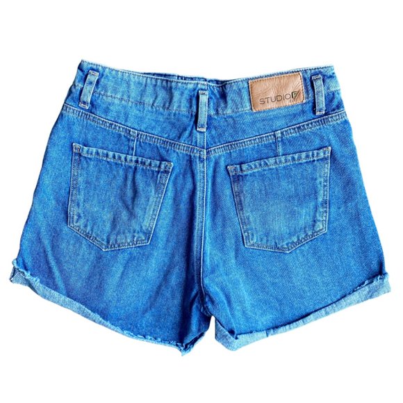 Studio F Rolled Hem High Rise Pleated Denim Blue Jean Shorts Size 2