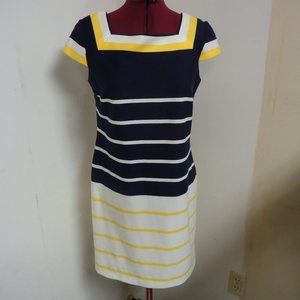 Studio I Size 6 Navy Blue Yellow and Cream Striped Mini Dress