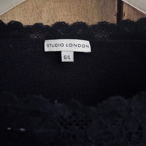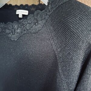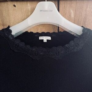 Studio London Black Thin Knitted Top Blouse with Lace Trim Short Sleeve Size L